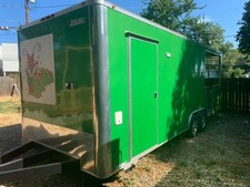 Fully equipped food prep trailer with showcase, hot and cold water (clean water on top, grey water on bottom), 2 fridges, prep table with storage, microwave.